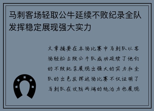 文章摘要:在本场比赛中,马刺队以客场轻松击败公牛队,成功延续了他们的不败纪录,展现出强大的实力和全队的出色发挥。这场比赛不仅证明了马刺队在攻防两端的统治力,也展现了他们出色的团队配合和个人技术。通过快...